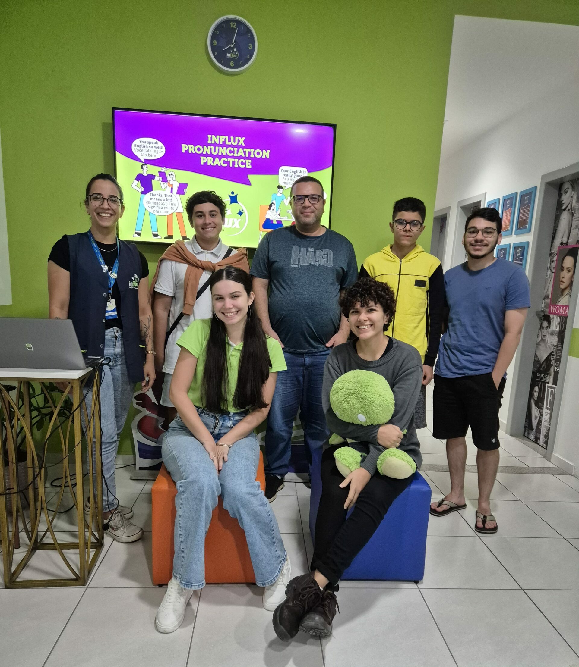 Os alunos da inFlux Linhares participaram de uma atividade pra lá de descontraída. Aprenderam sotaques e pronúncias, entenderam como funciona o famoso connected speech, e muito mais!
