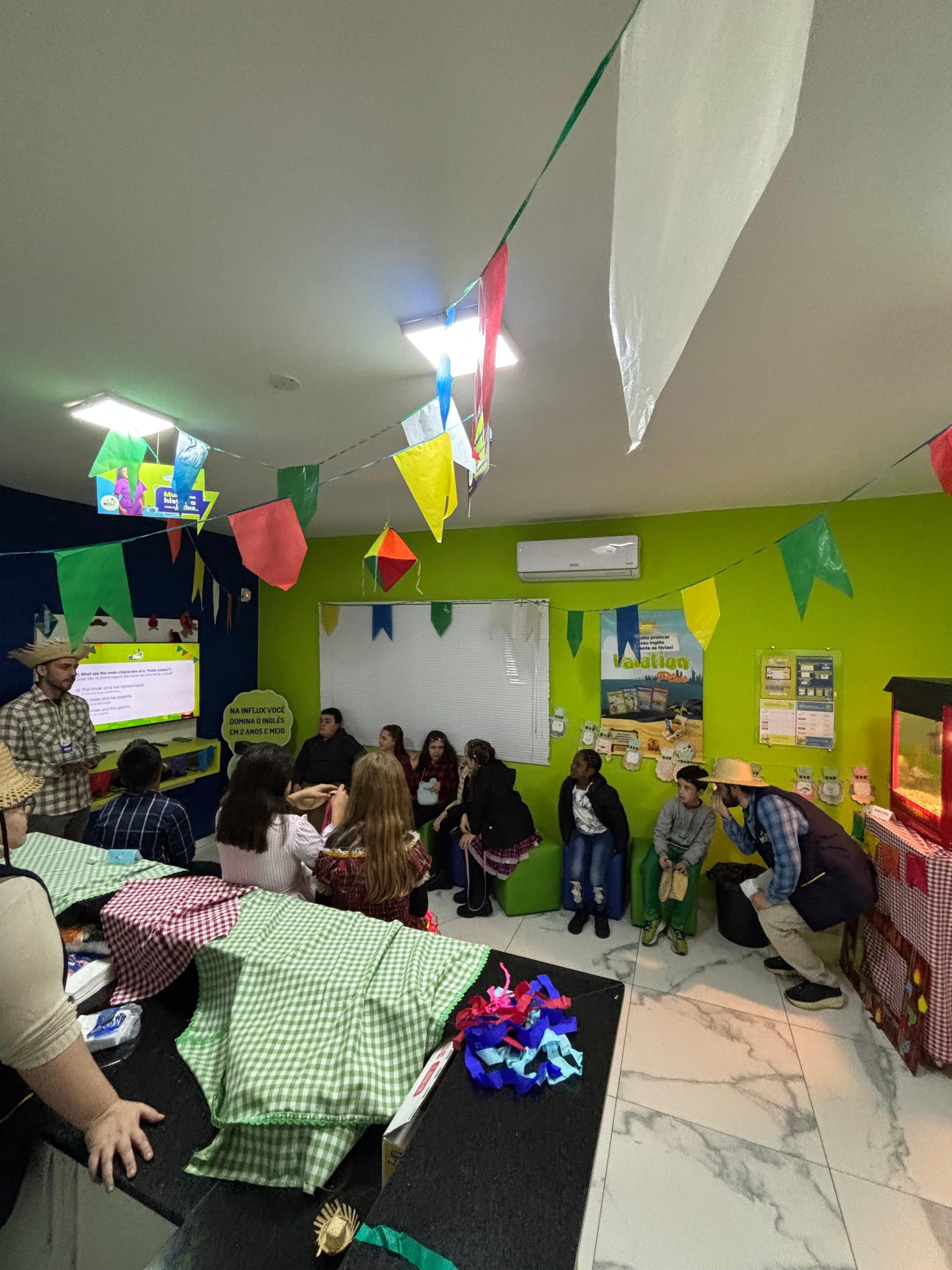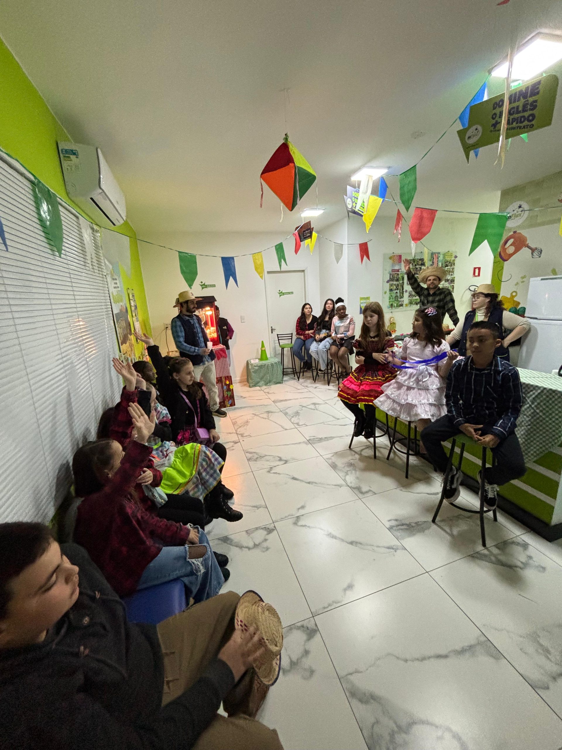 A inFlux Toledo fez uma incrível Atividade Extra com o tema: “Festa Junina InFlux- Arraiá bilíngue”. Os alunos Kids, Juniors and teens praticaram o inglês de uma maneira descontraída enquanto aprendiam mais sobre como surgiu as festas Juninas e Julinas com um divertido Quiz ,se divertiram com várias atividades relacionadas ao dia. Aprenderam muito vocabulário e expressões novas. No final dançaram músicas típicas e brincaram muito com jogos divertidos de festa junina. No final teve muitas comidas e bebidas típicas. Foi bão demais da conta sô!